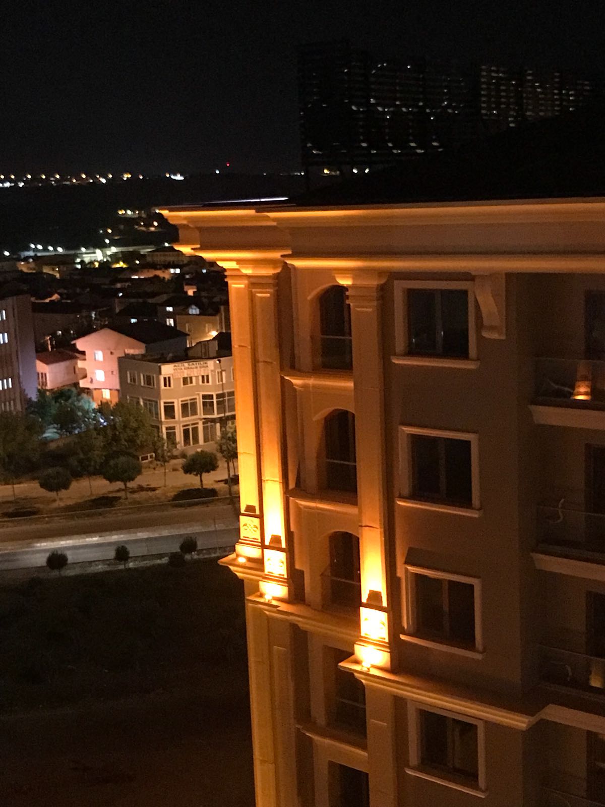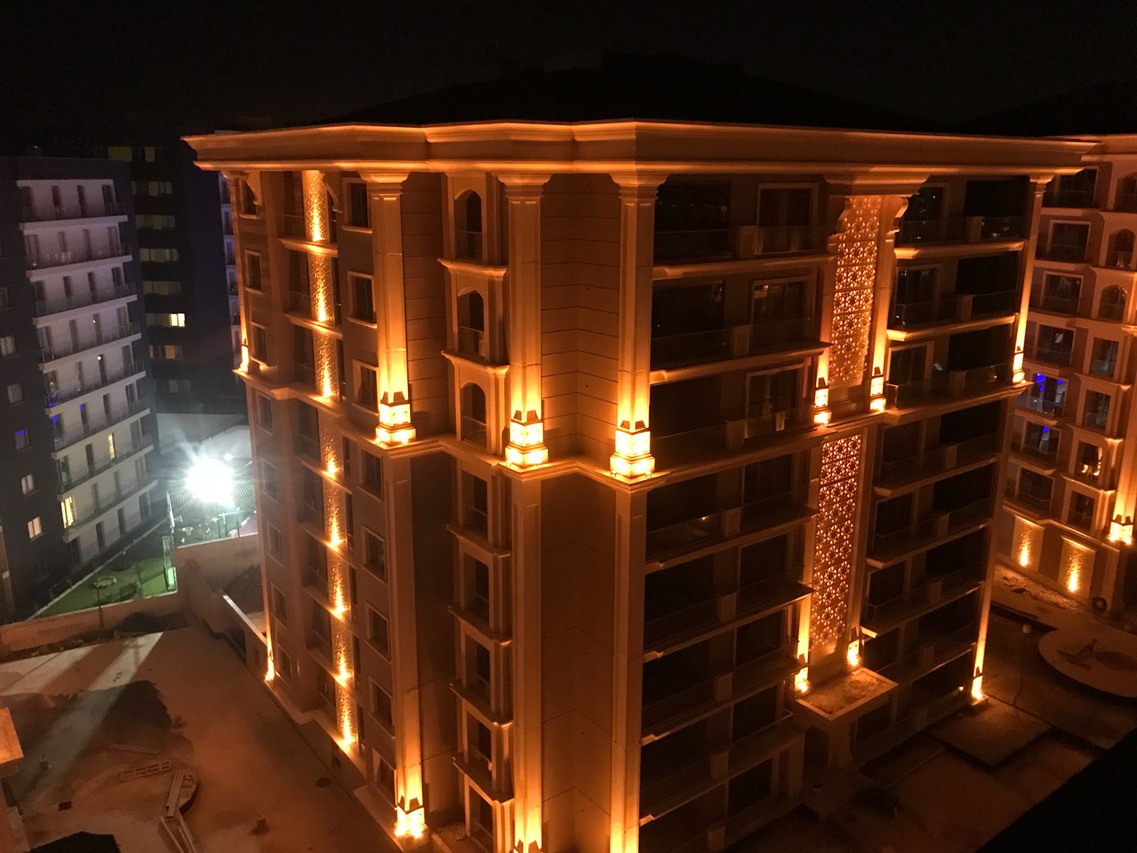 Gece ışıklandırması tamamlanan Şehrigül Konakları zerafeti ile Silivri'deki projeler içerisindeki farkını ortaya koyuyor.