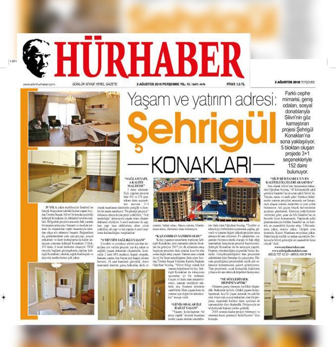 Farklı cephe mimarisi , geniş odaları , sosyal donatılarıyla Silivri'nin göz kamaştıran projesi Şehrigül Konakları'nda sona yaklaşılıyor. 5 bloktan oluşan projede 3+1 seçenekleriyle 152 daire bulunuyor.